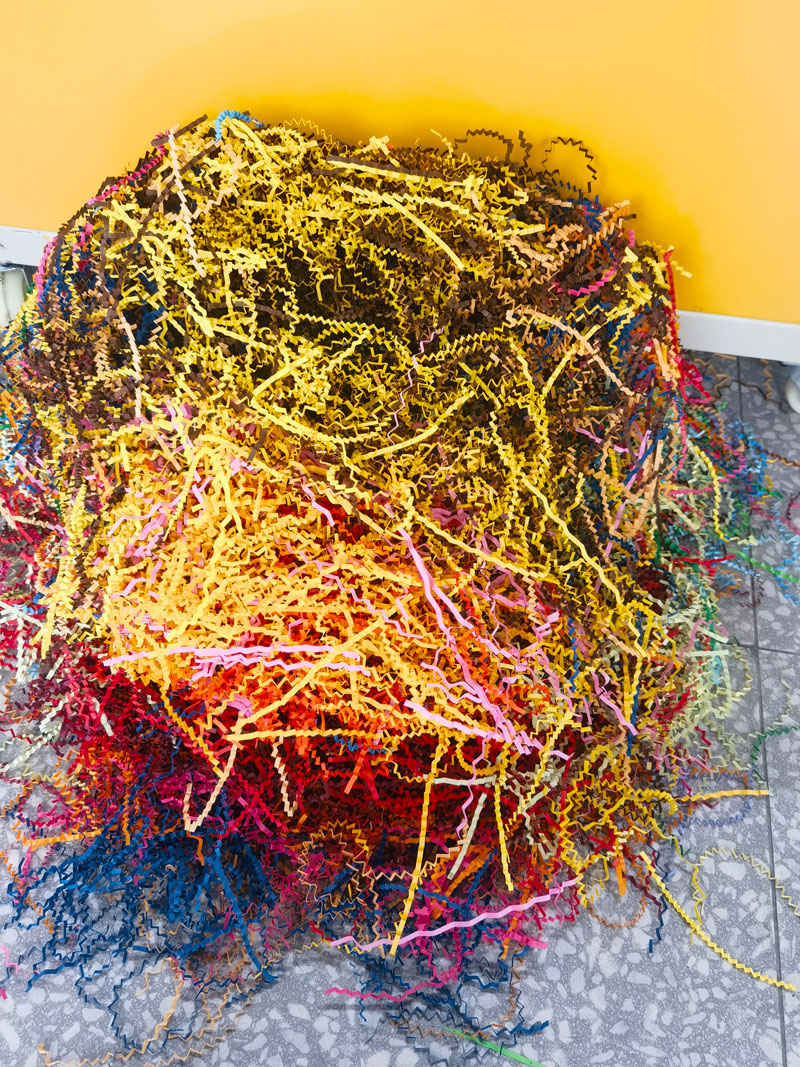 Special forming gears compress and twist the shredded paper to create the signature crinkle or zigzag shape. -