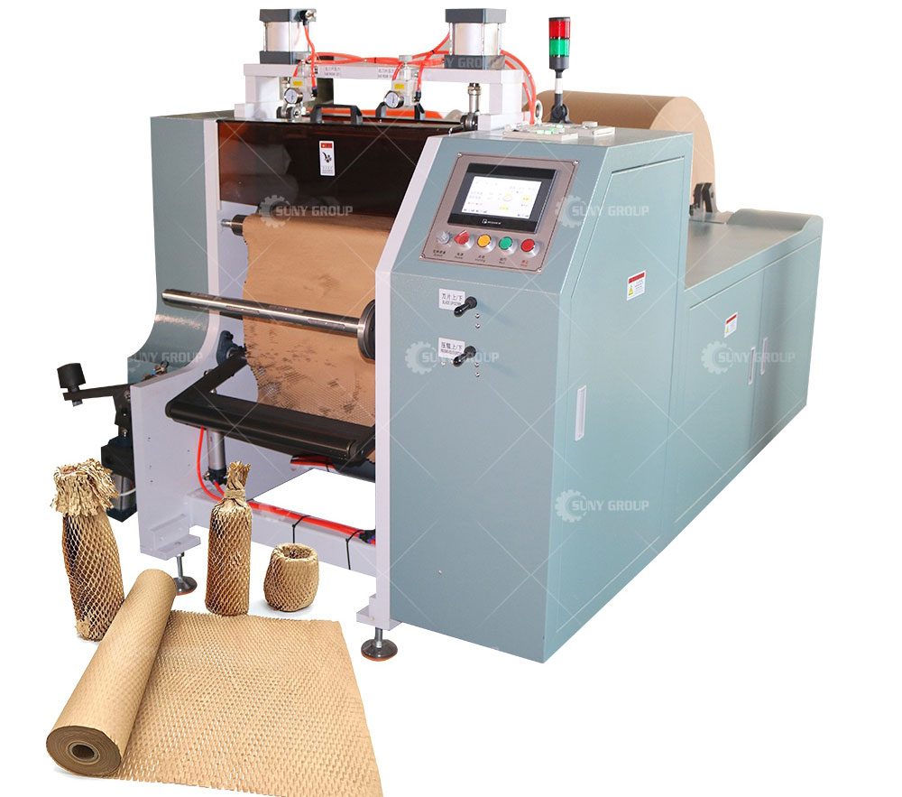Load the paper roll onto the feeding system, then adjust the tension and alignment to ensure smooth and continuous feeding. On the control panel, set parameters such as working width, cutting length, and production speed according to your requirements. Start the machine to produce uniform honeycomb paper, and rewind or cut the finished material as needed.